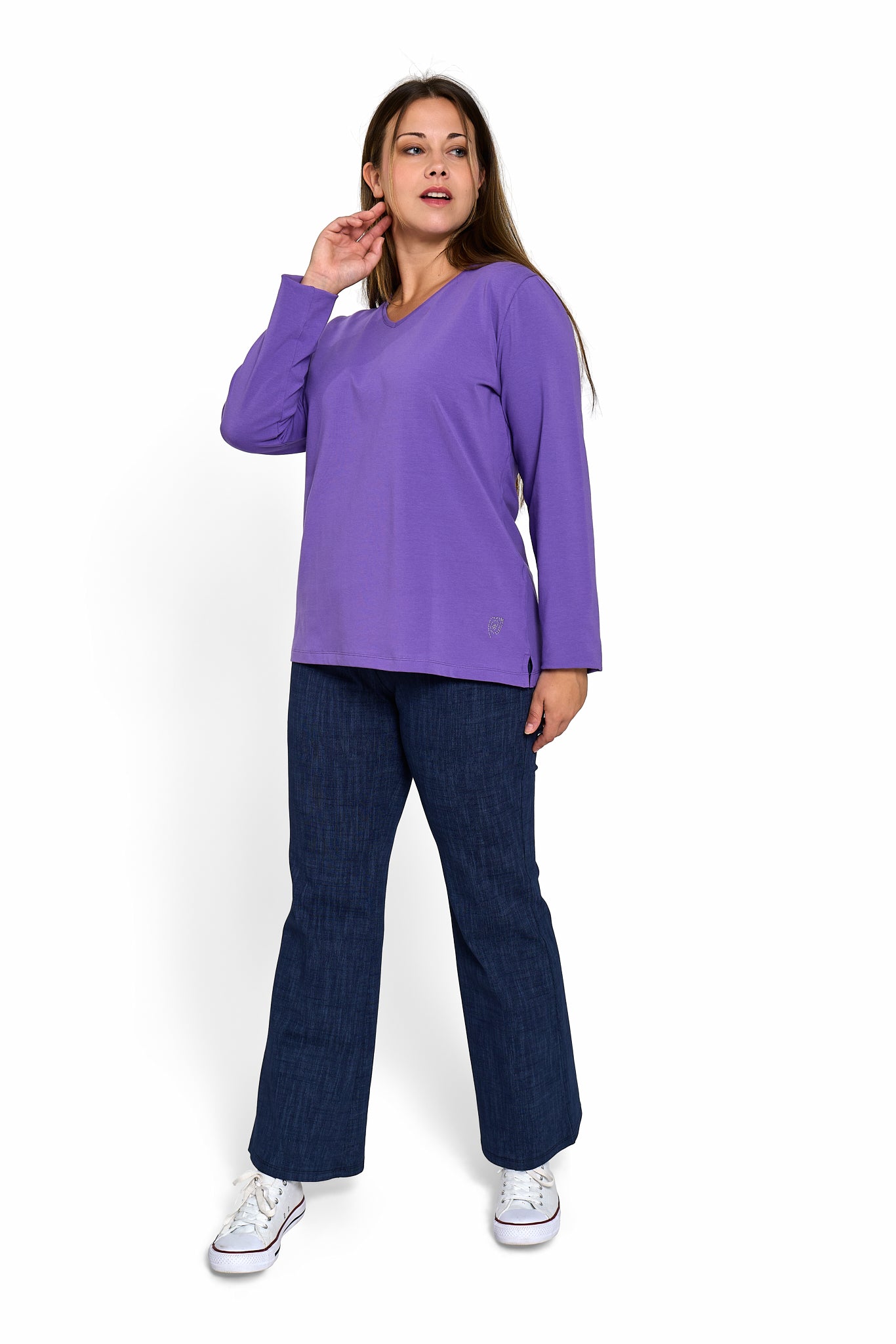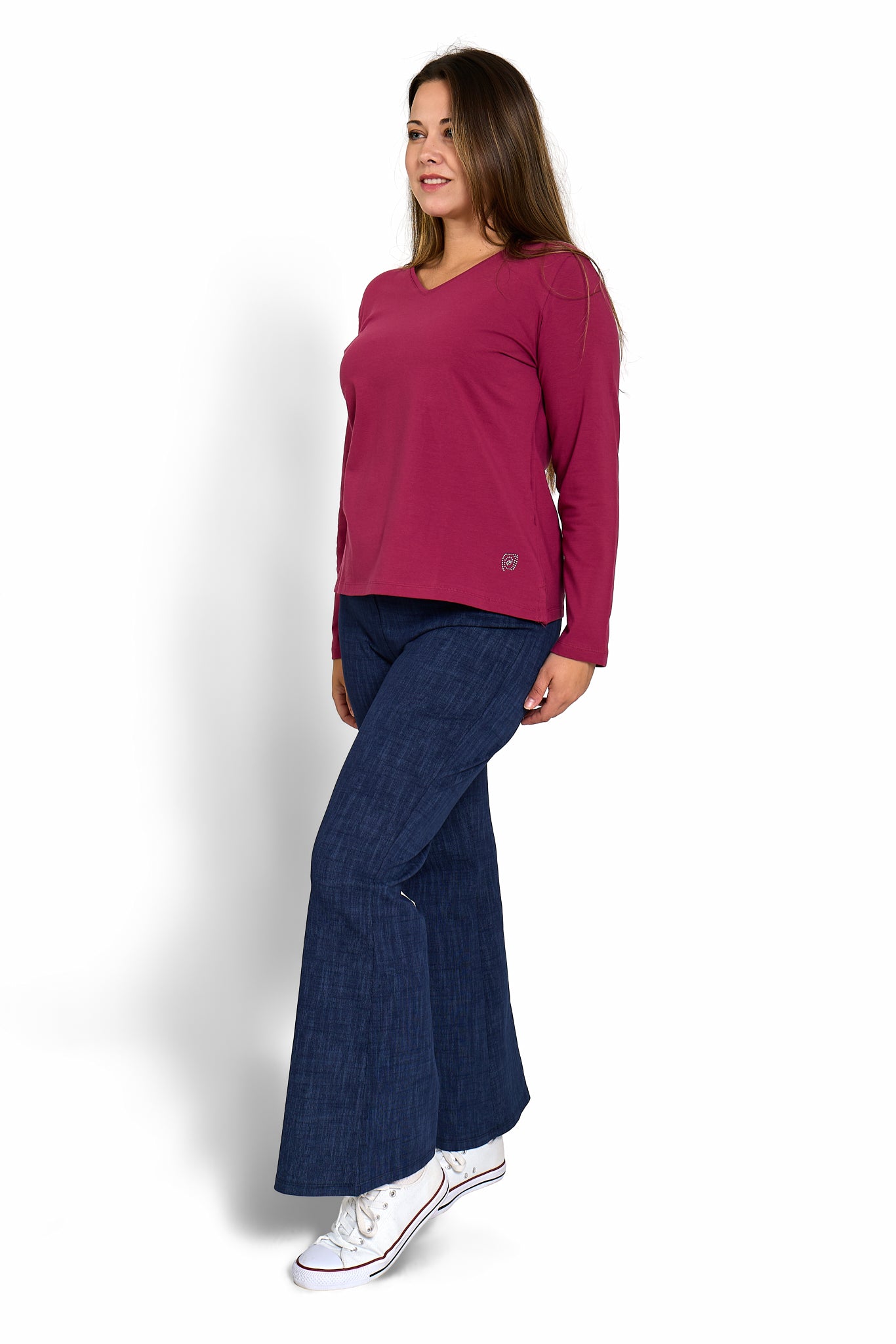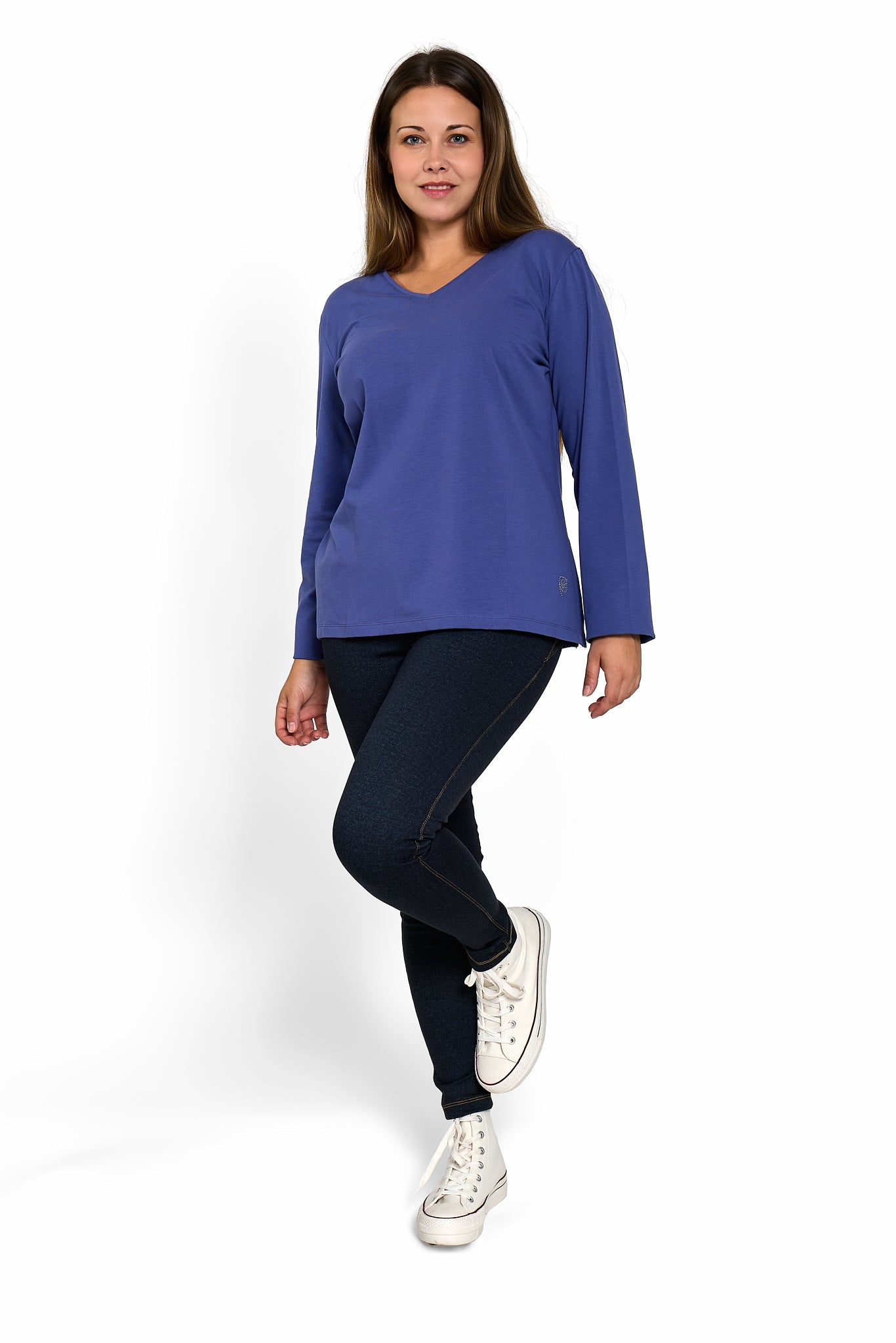 Camiseta básica en manga larga y cuello pico.